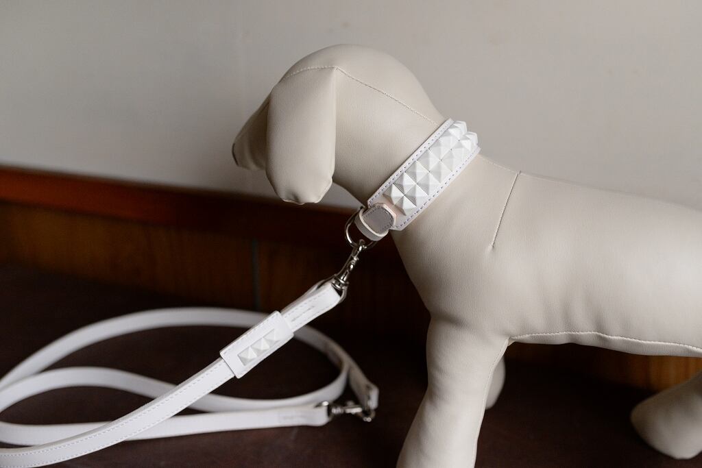 イタグレの白いスタッズ首輪とリードのセット S-sw7L7sw4bb